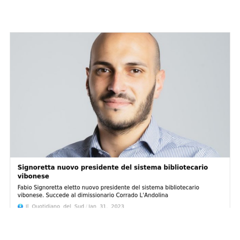 Dal 31 Gennaio 2023 al 31 Gennaio 2024 ho ricoperto il ruolo di Presidente del Sistema Bibliotecario Vibonese, la più grande biblioteca pubblica della Calabria. Iscritto a Radicali Italiani e a +Europa, partito in cui attualmente ricopro il ruolo di Coordinatore regionale per la Calabria.